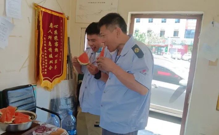 在這個酷熱的夏天里,車隊為駕駛員們精心準(zhǔn)備了清涼解渴的西瓜和消暑佳品綠豆粥,讓駕駛員們在短暫的休息時間里,得以迅速緩解燥熱與疲憊,恢復(fù)元?dú)猓U鲜忻癜踩孢m出行。